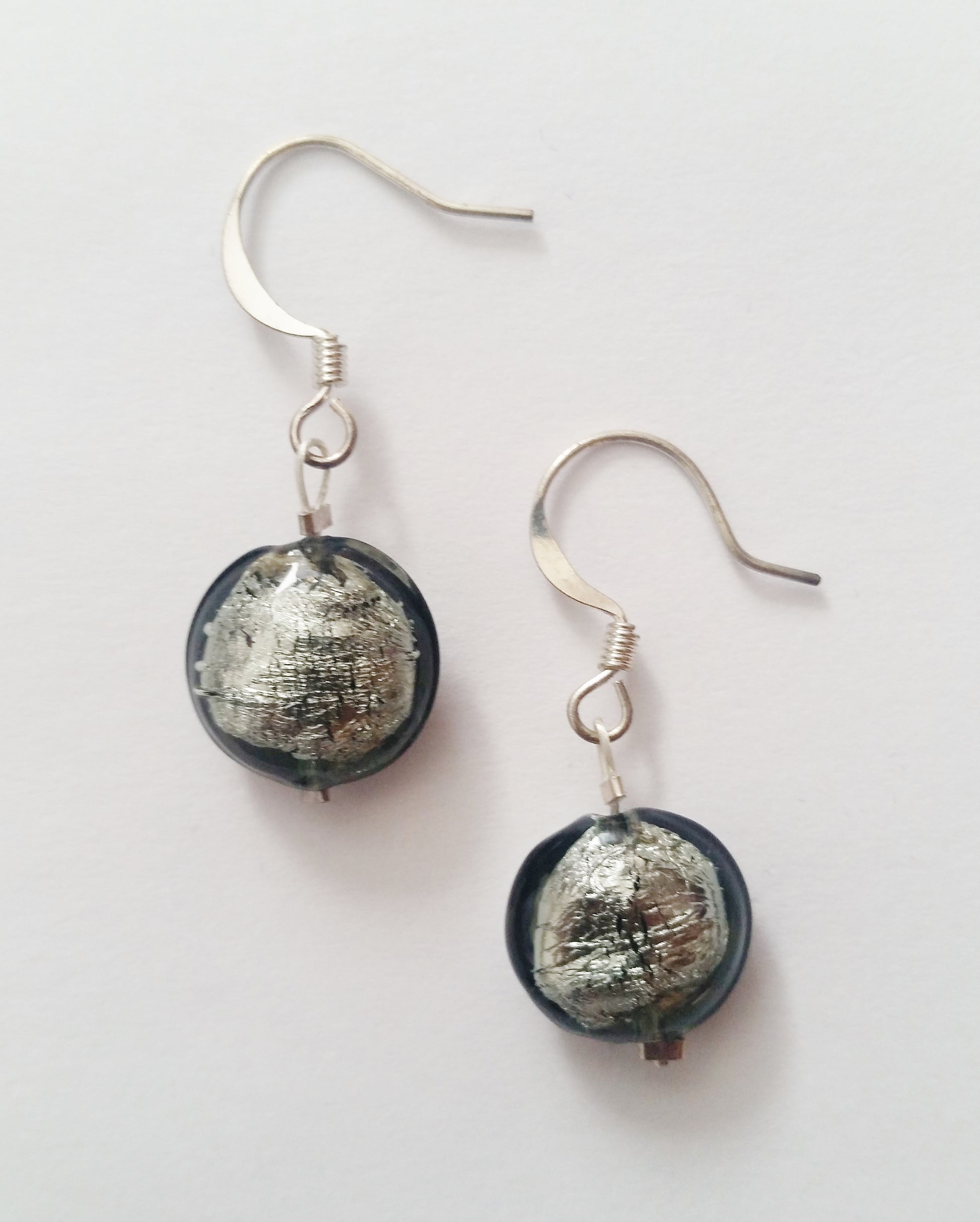 Classic lentil shaped Viviana earrings, smokey glass wrapped in silver is wearable day or night.